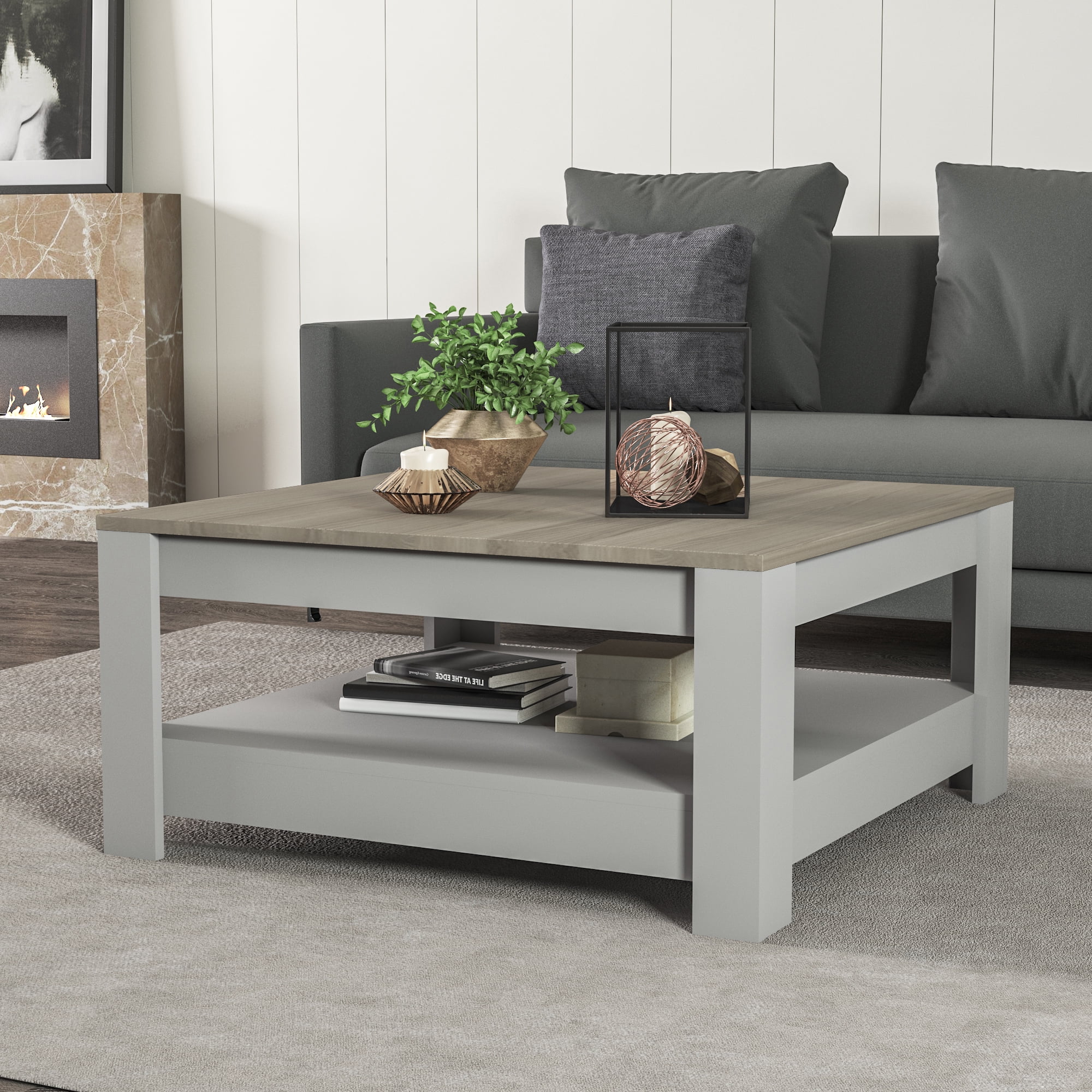 35 Inches Grado Coffee Table Two Tier Square Coffee Tables Light Grey And Oak Finish Walmart Com